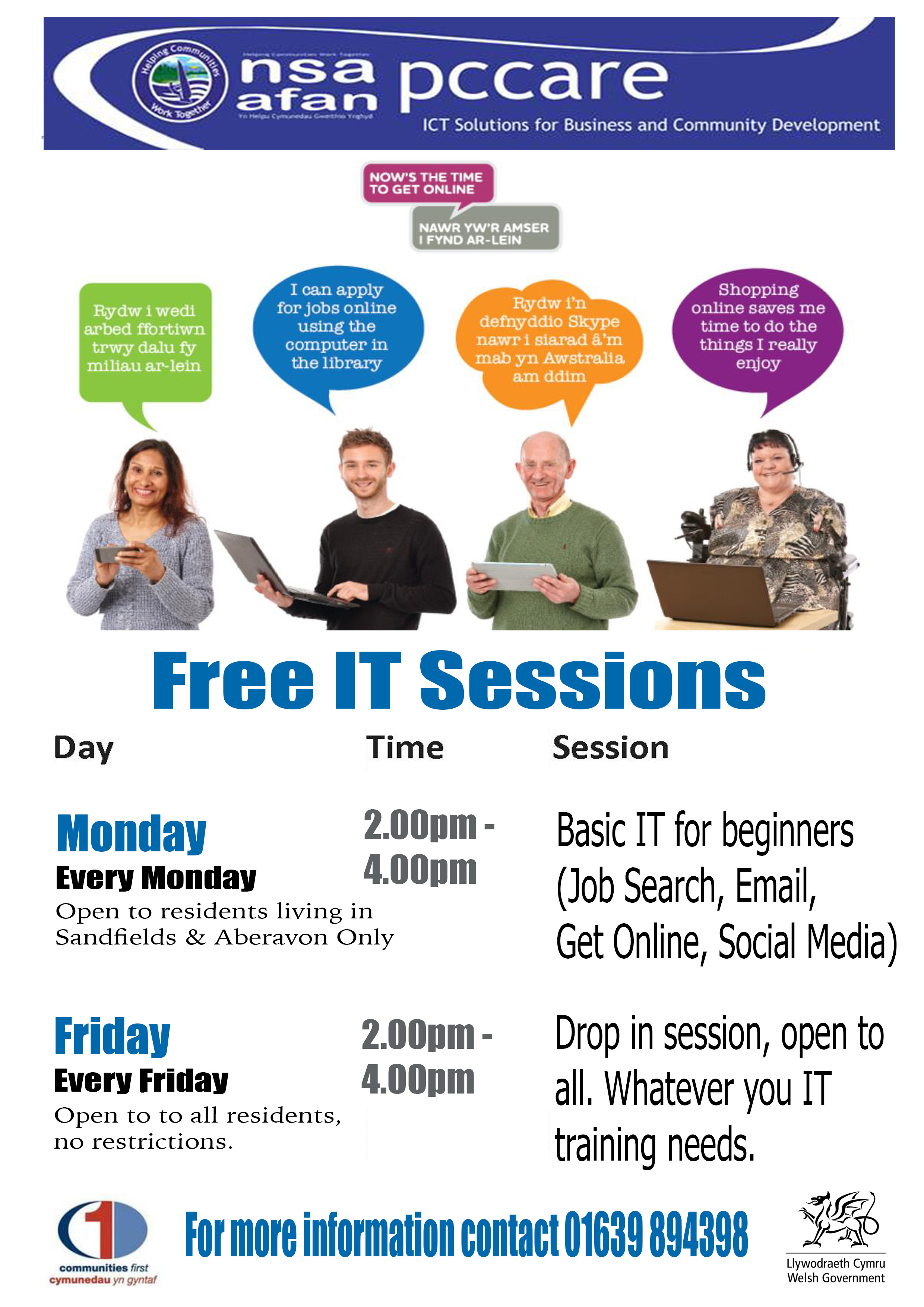 - We provide a FREE drop in training session per week to Residents, Community Groups and Not For Profit Organisations Across Neath Port Talbot. CLICK HERE for a list of courses and training that NSA Afan offer.